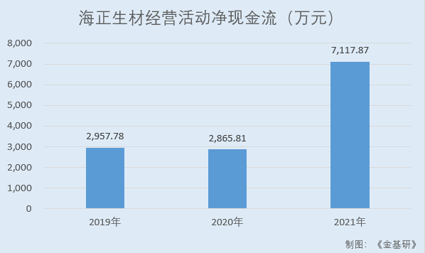 2019-2021年,海正生材经营活动产生的现金流量净额分别为2,957.78万元、2,865.81万元、7,117.87万元。