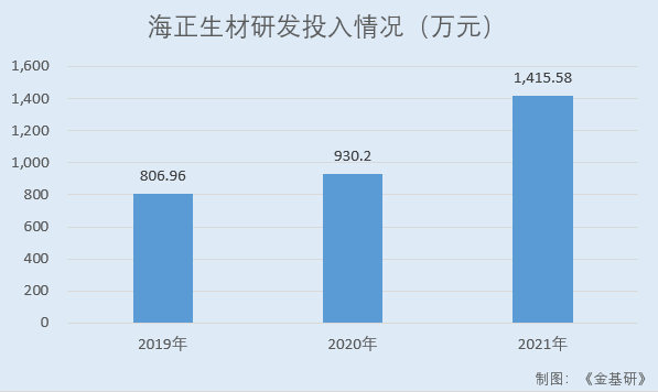 据招股书,2019-2021年,海正生材的研发投入分别为806.96万元、930.20万元、1,415.58万元,呈逐年上升趋势。