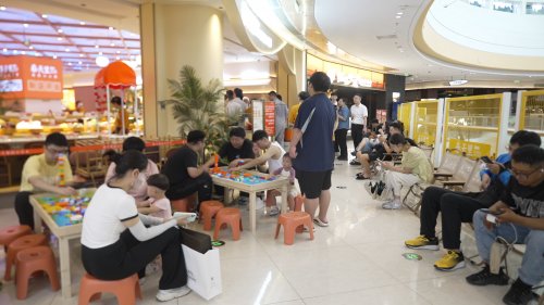 在瑞安吾悦广场,节日的氛围扑面而来,各家店铺门前顾客络绎不绝。在五楼的一家网红餐厅门口,记者观察到,市民们拿着排队的号码纸,三三两两地坐在等候区安静候餐,队伍虽长,但没有出现插队或推搡的现象。该店店家也特意在等候区设置了几张彩色积木桌,供带孩子的家庭使用。不少家长借此机会,轻声教导孩子学会耐心等待。
