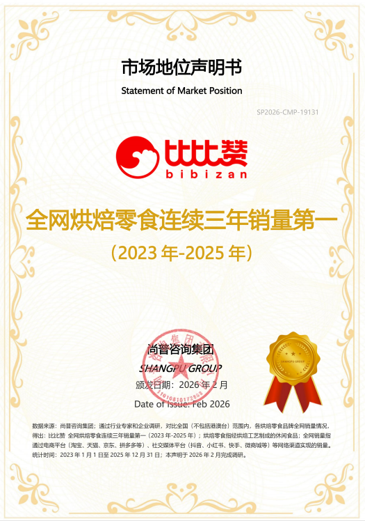 比比赞获尚普咨询权威认证 全网烘焙零食连续三年销量第一要闻解读