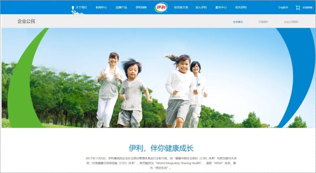 伊利官网“企业公民”专栏: